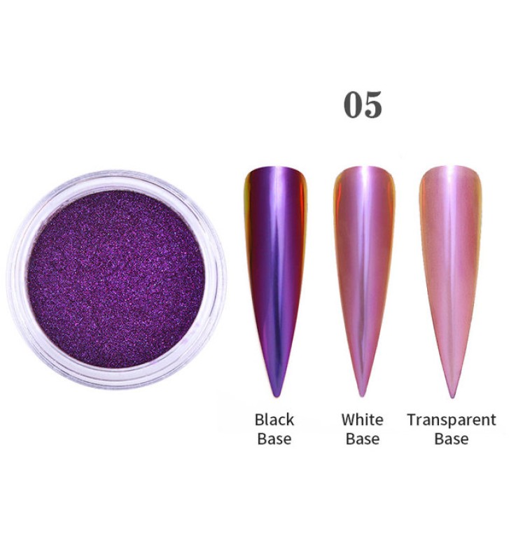 Мельчайшая пыльца втирается в поверхность, не имеющую липкого слоя, образуя тонкую и абсолютно ровную пленку на покрытии. Втирка может быть использована как для создания полноценного покрытия на всю поверхность ногтевой пластины, так и в качестве акцентов с использованием различных трафаретов.