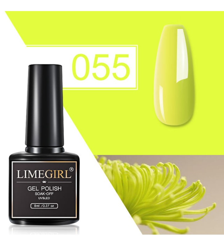 Цветной гель-лак торговой марки Limegirl  по своей консистенции средний по густоте.  Имеет  плотную и удобную кисть. Гель-лаки Limegirl имеют яркие, насыщенные, плотные цвета. Эти гель-лаки не скалываются, не отслаиваются, и долгие в носке.