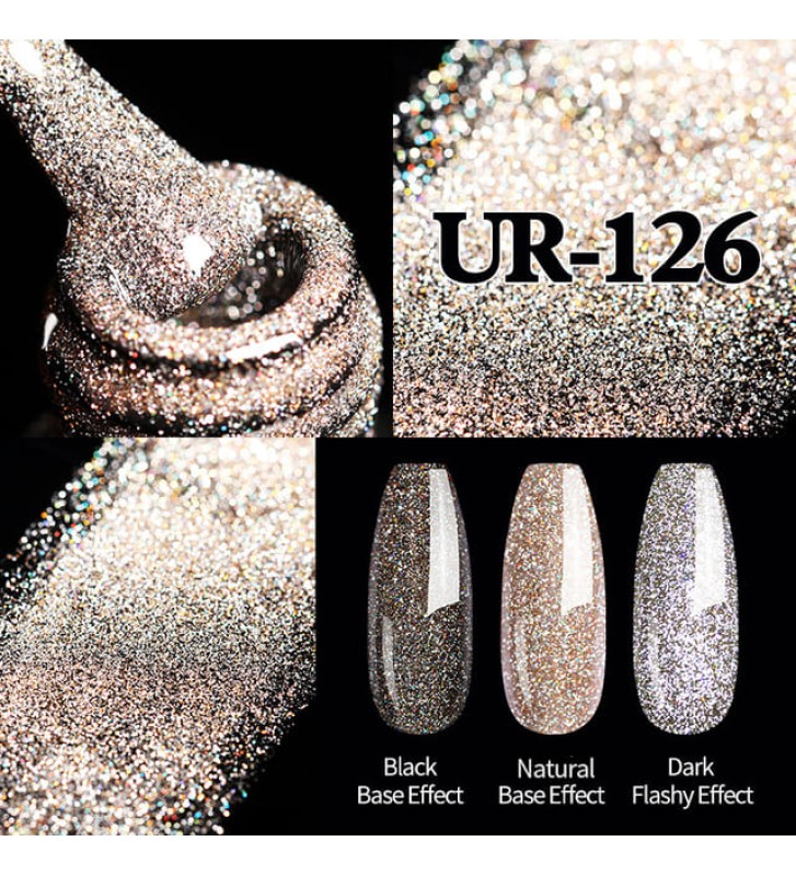 Светоотражающий гель лак Sugar имеет в составе опаловую блеску и светоотражающий песок. При дневном свете сияние блестки. В темное время суток при попадании искусственного света  срабатывает светоотражающий эффект.  Гель лаки со светоотражающими эффектами возможны в использовании как самостоятельный цвет, но с подложкой в тон цвета смотрится гораздо ярче