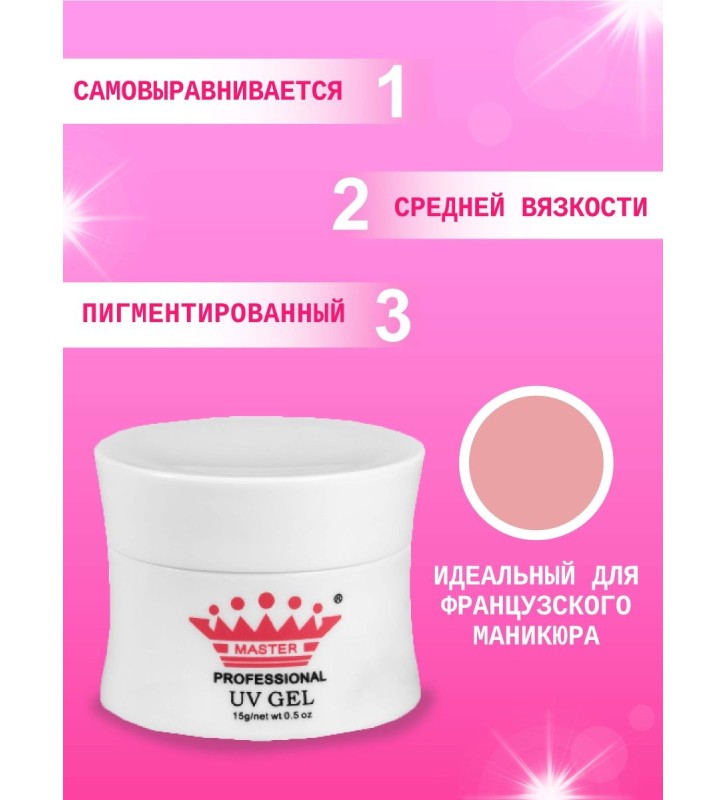 Гель используется при наращивании и укреплении ногтей. Благодаря натуральному розовому оттенку с карамельным под-тоном и плотной пигментации идеально подходит для выравнивания цвета ногтевой пластины, удлинения ногтевого ложа и создания французского маникюра. Перекрывает линию свободного края только при наслоении и остается полупрозрачным у кутикулы. Материал имеет среднюю степень вязкости, выравнивается сам при нанесении, легко моделируется кистью и поджимается через 40, 60 секунд. Способ применения На подготовленную ногтевую пластину выложите необходимое количество геля. Кистью распределите материал по поверхности ногтя и формы. Полимеризуйте в UV-лампе 120-180 секунд в зависимости от мощности лампы При необходимости подожмите форму через 40-60 секунд. Снимите дисперсию, опилите и покройте топом. Теги: маникюр, гель для маникюра, для наращивания, для укрепления, для выравнивания, для маникюра, для педикюра, для моделирования, французский маникюр, подарок.