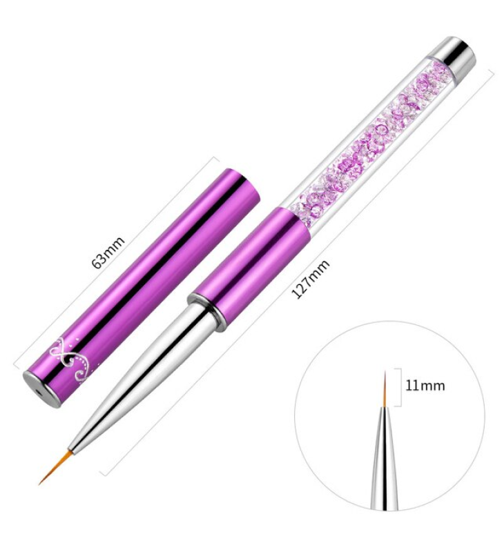 Кисть для вензелей – одна из самых любимых кистей мастеров ногтевого сервиса. Начиная от качественного материала и заканчивая ее стильным утонченным дизайном. Кисть имеет колпачок, что позволит хранить кисть в закрытом виде без возможности повреждения, стеклянная ручка, наполненная жемчужными бусинами. Работая с такой кистью, вы точно произведете впечатление на Ваших клиентов.
