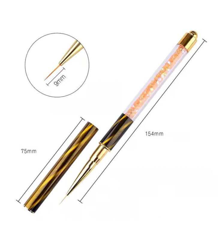 Кисть для вензелей – одна из самых любимых кистей мастеров ногтевого сервиса. Начиная от качественного материала и заканчивая ее стильным утонченным дизайном. Кисть имеет колпачок, что позволит хранить кисть в закрытом виде без возможности повреждения, стеклянная ручка, наполненная жемчужными бусинами. Работая с такой кистью, вы точно произведете впечатление на Ваших клиентов.
