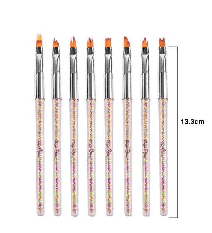 Такой набор кистей должен иметь каждый мастер от начинающего до профессионала. Кисти имеют разную форму, длину и густоту ворса – они просто необходимы для современного, уникального ногтевого дизайна: роспись, тонировка, узоры, градиент и многое другое.