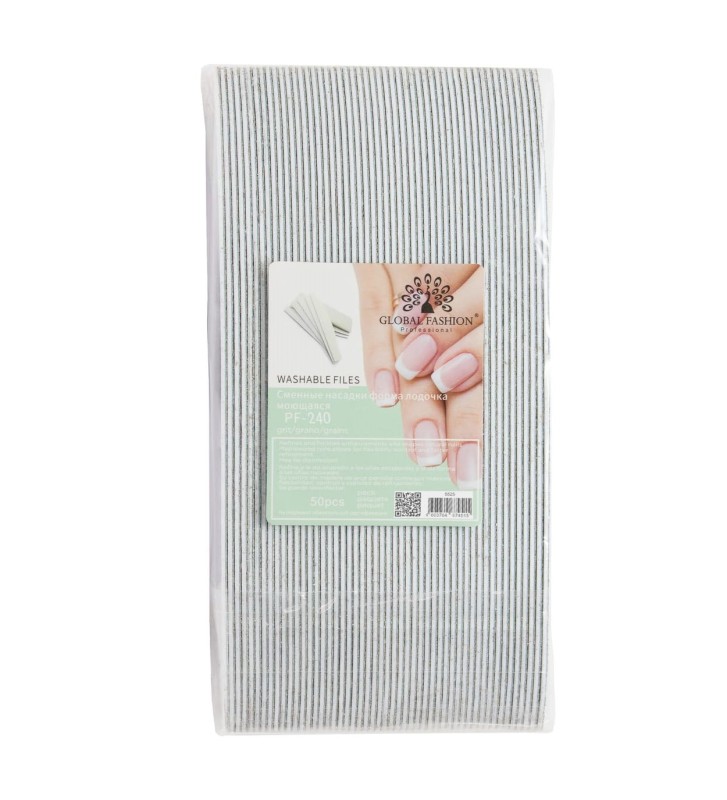 Сменные файлы 240 грит имеют липкую основу, клеятся на подходящую по размеру металлическую основу непосредственно перед обработкой ногтей. После обработки сменная пилка отклеивается и утилизируется, не требуя от мастера дополнительных затрат по дезинфекции и стерилизации, что очень выгодно и экономично. Еще немаловажным является то, что мастер может наклеить на металлическую основу пилочки нужной жесткости в таком сочетании абразивов, которые не выпускаются при стандартном заводском производстве. Основа имеет две поверхности, поэтому при необходимости можно использовать две пилки разной жёсткости.