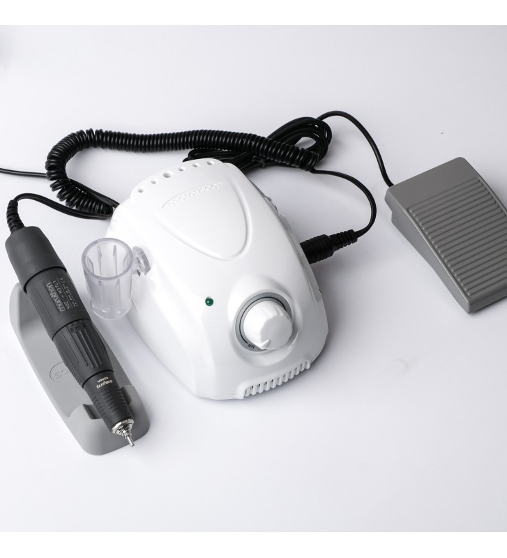 Эта модель бесспорно является мечтой любого мастера, так как преимущества его работы, компактность и красивый дизайн не оставляет равнодушным. Мощность данного фрезера является топовой, бесшумность его работы удивляет. Причудливая подставка для фрез на самом аппарате не имеет аналогов в другой модели. Оснащен реверсом, двойным приводом (ручной и ножной), так же стоит отметить,что ручка фрезера легкая и небольшая, имеет обдув.