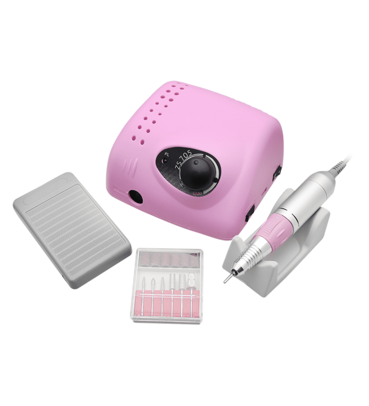 Характеристики: Название продукта: аппарат для маникюра и педикюра Мощность: 65 ватт Скорость вращения: 35 000 об/мин Напряжение: 220 В Частота: 50-60 Гц Цвет: розовый