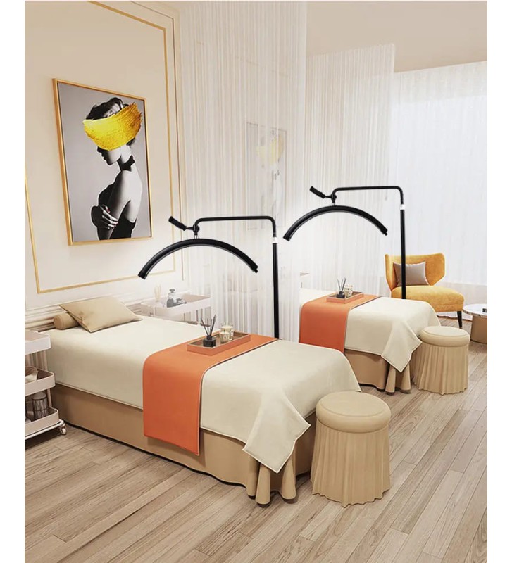 Бестеневая лампа на штативе с уникальной формой светильника в виде дуги — это самый лучших вариантов профессионального света для стилистов, визажистов, мастеров по наращиванию и ламинированию ресниц, мастеров-бровистов, косметологов и других специалистов в области красоты.