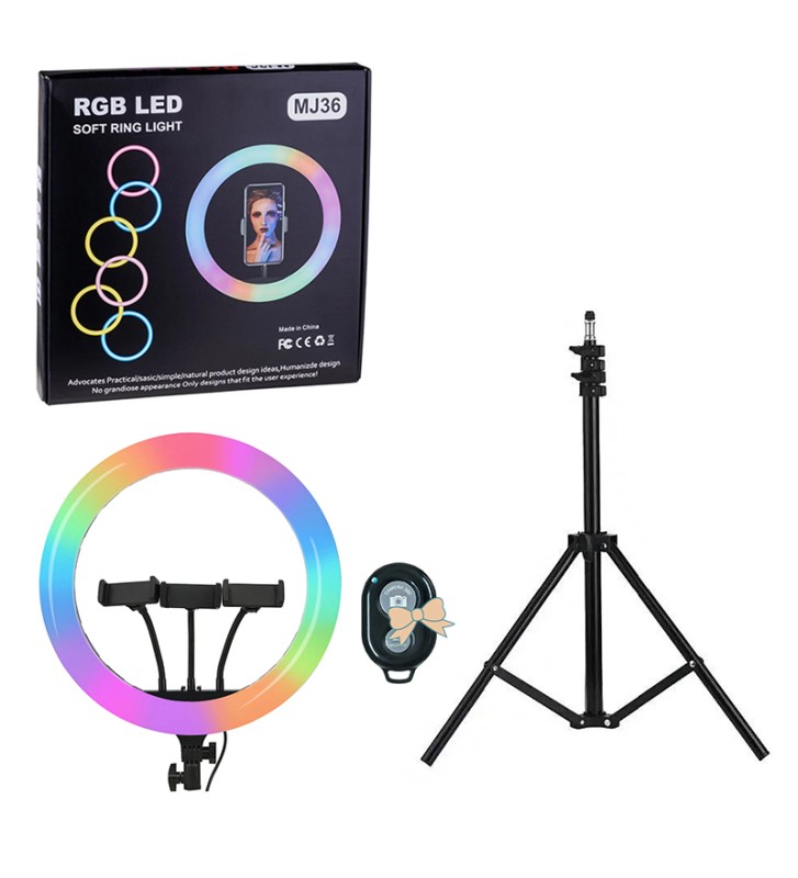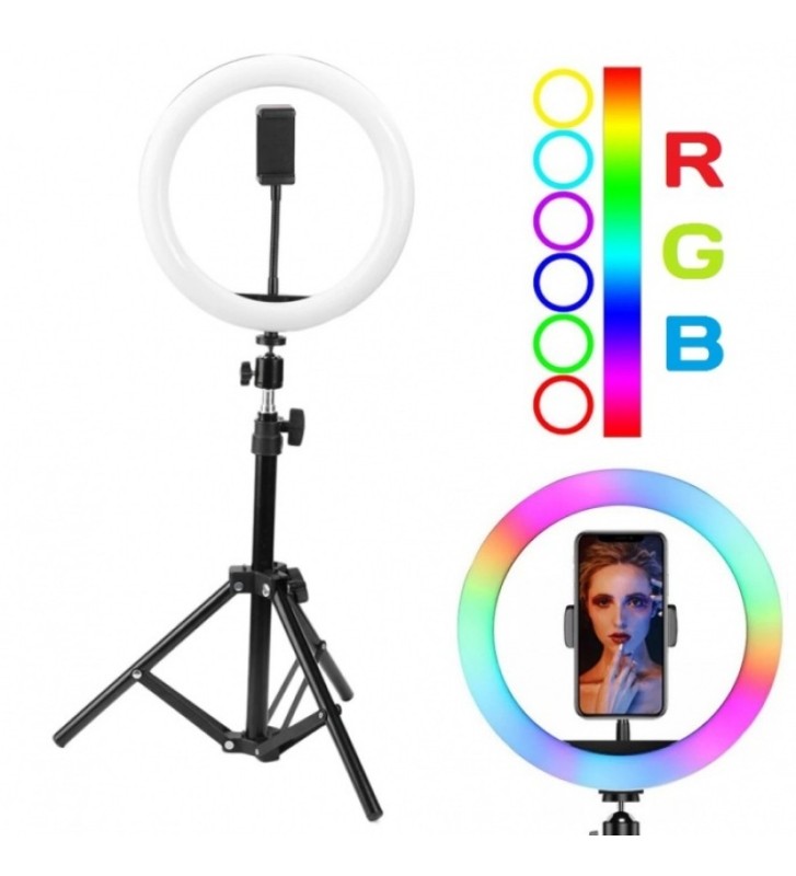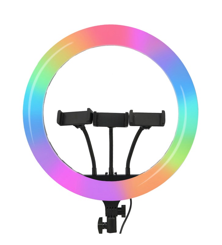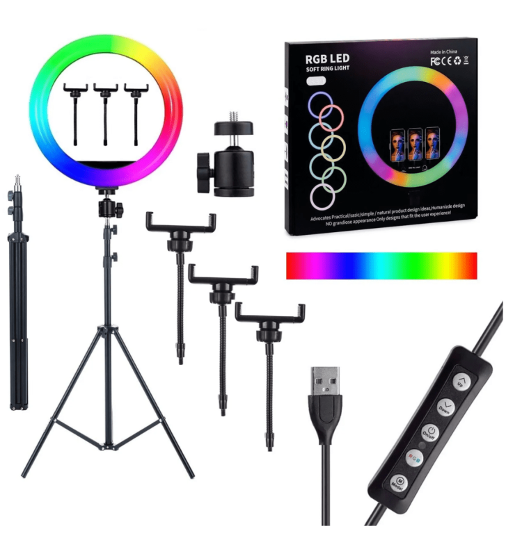 Кольцевая лампа разноцветная RGB для фото и видео. Режимы переключения разных оттенков цветов позволят создавать красивые ролики и вам больше не нужно использовать наложение фильтров, пресетов или редактировать фото. Лампа все сделает за вас!