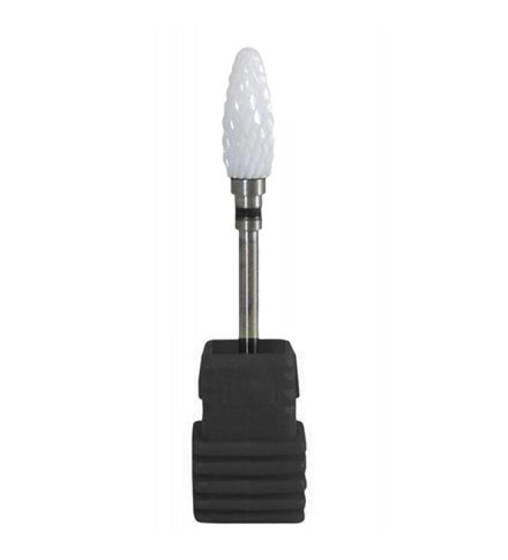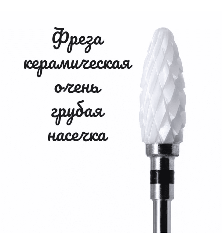 Износостойкий материал, ставший основой для создания насадки - керамика, которая во многом превосходит металл, так как тверже и прочнее его. Такая фреза не затупится никогда, и многие мастера называют ее "вечной". Керамическая насадка характеризуется неоднородной структурой, что позволяет придавать опиливаемым поверхностям идеальную гладкость за очень короткое время. Она имеет высокую степень остроты, однако не травмирует ногти и кожу. Особенности керамических фрез заключаются в том, что они не подвержены коррозии, не нагреваются и не забиваются пылью. Прекрасно зарекомендовала себя в медицинском педикюре. Керамические фрезы можно использовать при влажной и сухой обработке.