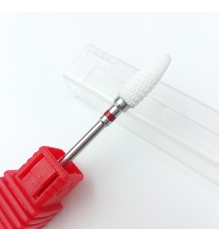 Износостойкий материал, ставший основой для создания насадки - керамика, которая во многом превосходит металл, так как тверже и прочнее его. Такая фреза не затупится никогда, и многие мастера называют ее "вечной". Керамическая насадка характеризуется неоднородной структурой, что позволяет придавать опиливаемым поверхностям идеальную гладкость за очень короткое время. Она имеет высокую степень остроты, однако не травмирует ногти и кожу. Особенности керамических фрез заключаются в том, что они не подвержены коррозии, не нагреваются и не забиваются пылью. Прекрасно зарекомендовала себя в медицинском педикюре. Керамические фрезы можно использовать при влажной и сухой обработке.
