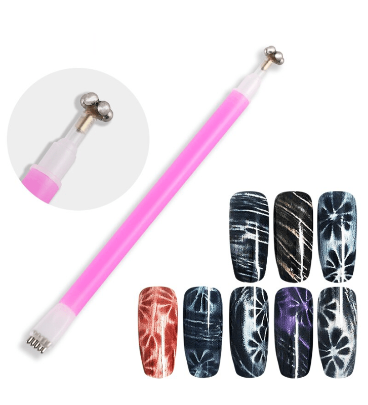 Кончик ручки необходимо держать на расстоянии 0,5 мм от гель-лакового покрытия и рисуете. Специальная ручка-магнит для гель-лаков Кошачий глаз. Магнитная ручка для гель-лака позволит выделить переливами темные и светлые области, создавая разнообразные и неповторимые дизайны. С помощью магнитной ручки можно выделить темные части. Вы сможете сделать необычные рисунки, а не только полосы как с обычным магнитом.